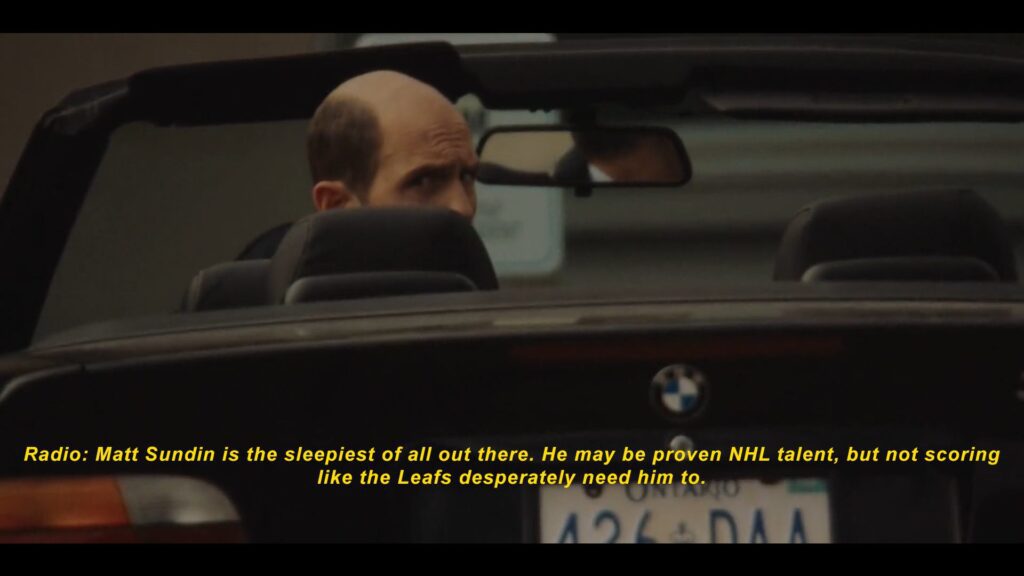 Starting from the very first shot in the film Matt Johnson places his Canadian audience into a time machine by relaying radio broadcasters’ commentary after a trademark Toronto Maple Leafs loss over a drive west on the 401. Anyone growing up in Ontario at this time is more than accustomed to hearing the groans of our city’s sportscasters over our car’s speakers early in the morning while driving through the endless factories and farmlands that make up this part of the highway.